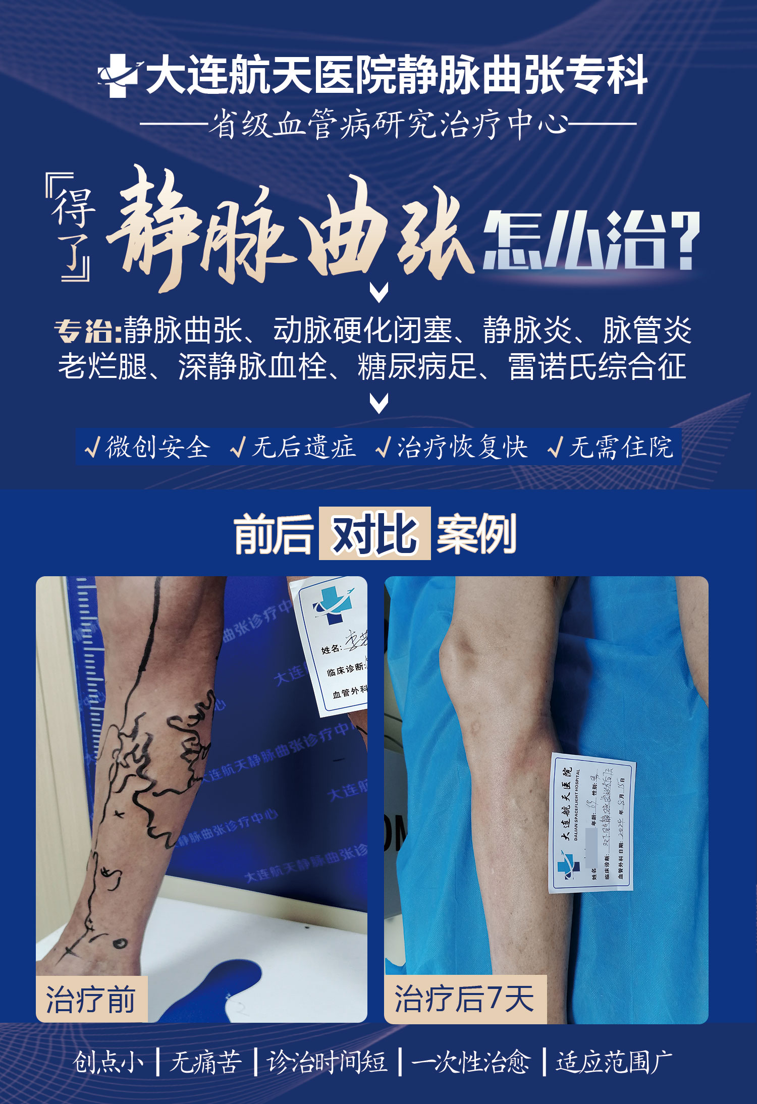 大连航天医院不住院一次性治疗静脉曲张老烂腿
